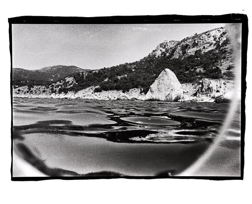 Во-первых, необходима тихая погода. Малейшая муть в воде, к которой глаз легко адаптируется и не замечает, сразу ограничивает дистанцию съемки буквально полуметром. Надо заметить, что при незначительном волнении муть сильнее поднмается у мелкого песчанного или галечного берега, а у крутопадаюших каменистых берегов почти незаметна. Поэтому более подходящим местом для подводной съемки будет восточная часть района, где берег образован осыпями из крупных камней или коренными скалам.