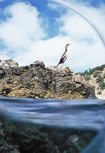 Когда один из бакланов, к которому я долго подкрадывался по воде с боксом, нырнул, я не успел не то, что навести камеру, а просто повернуться, как он исчез за дальним камнем.